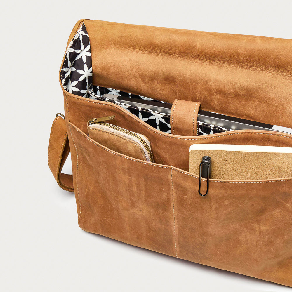 Action is prompted with the knowledge that the Kinsey Book Bag will last a lifetime, thanks to its quality build. Order now and experience the perfect combination of style and function that only Salute Leather Co. can provide.