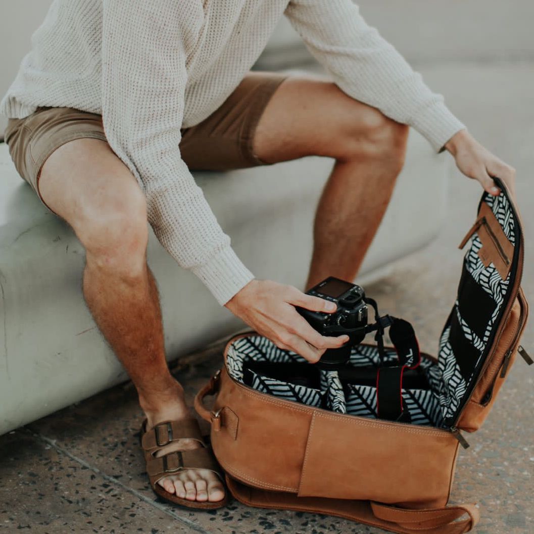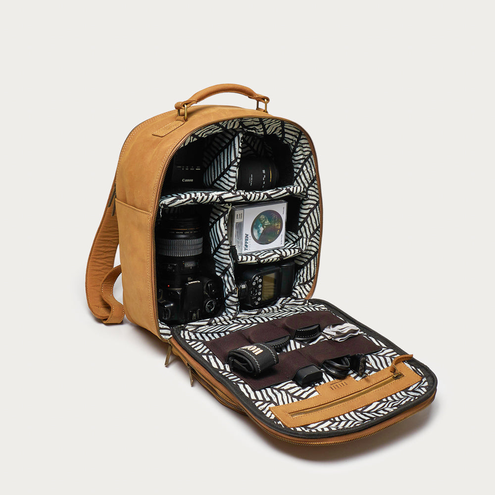 Keep Your Camera Safe - The photography backpack is made of durable heirloom buffalo leather, heavyweight stitching and generous padding all around to keep your equipment perfectly protected during demanding shoots in rough terrain or through the rough-and-tumble bags go through with air travel.