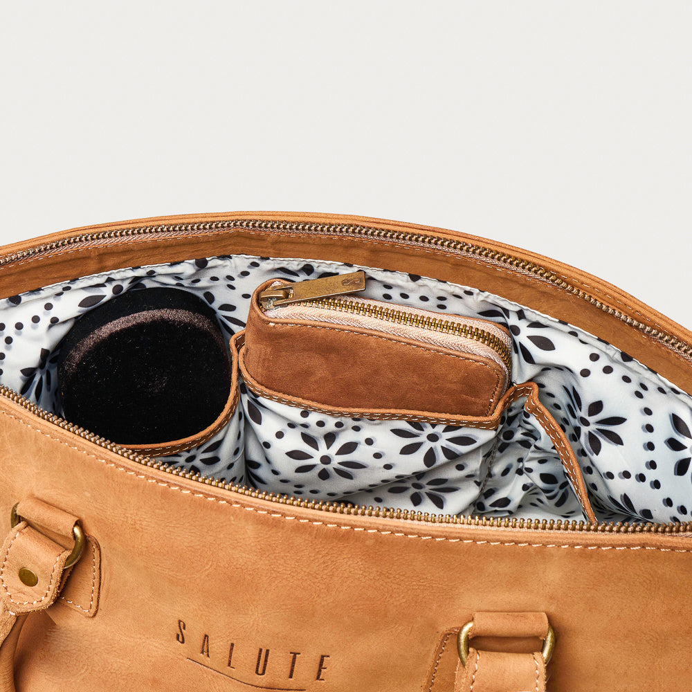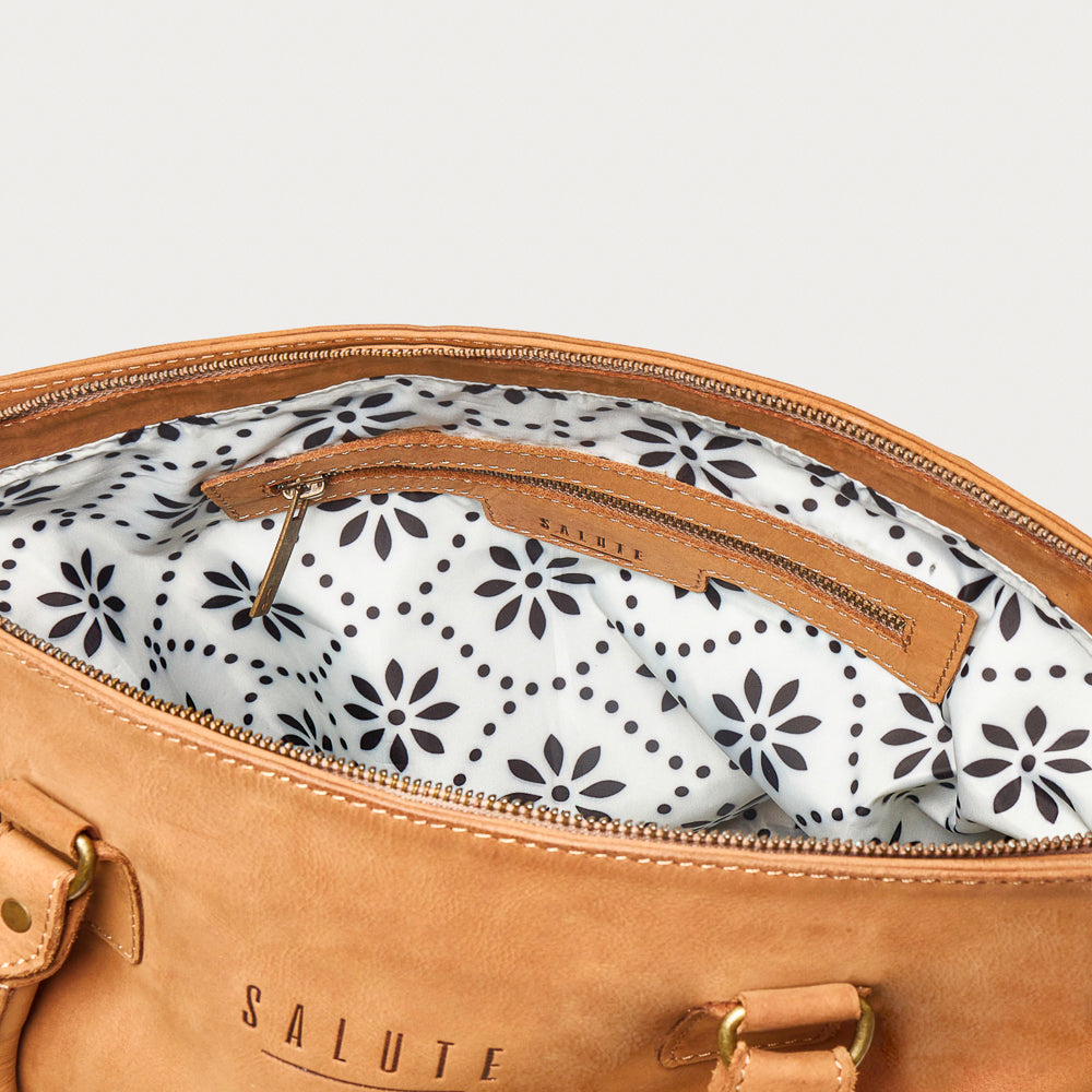 But it's not just about looks - the Sadie Handbag is built to last, with a durable construction that can handle the rigors of daily life. The thick leather handles provide a comfortable grip during extended use, while the strong build, solid stitching, and hardy zip ensure that your belongings stay secure and protected during your travels.